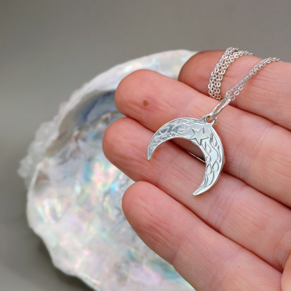 Az Égi Harmat nem csupán egy ékszer, hanem egy kézzel formált szakrális kapu, amely az ősi női erőt és a kozmikus ritmust ötvözi. A lefelé fordított félhold – az évezredes Lunula szimbólum – a befogadás, a termékenység és a tiszta intuíció jelképe. Ez a forma egy égi kehely, amely a magasságok erejét gyűjti össze, hogy aztán áldásként árassza szét viselője életében.