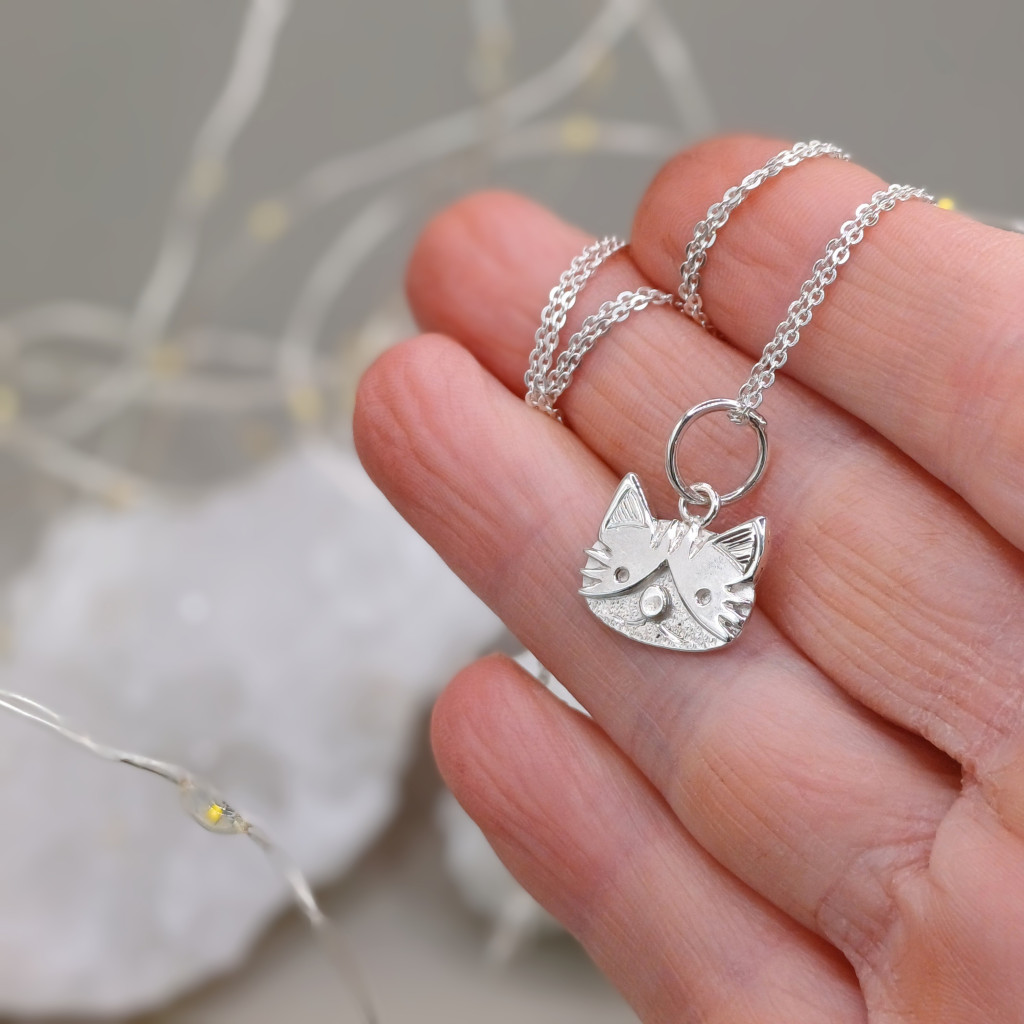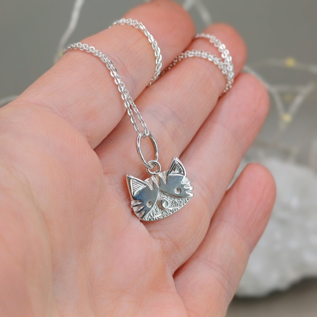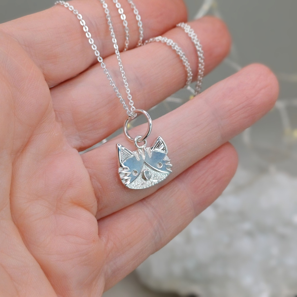 Aki egy cicával osztja meg az életét, pontosan tudja, hogy ők nem csupán háziállatok, hanem hűséges társak. Ezt az ékszert azért alkottam meg, hogy a kedvenced iránti szeretetedet minden nap a szíved felett viselhesd. A sterling ezüst csillogása és a cica bája garantáltan apró mosolyt csal az arcodra minden alkalommal, amikor a tükörbe nézel.