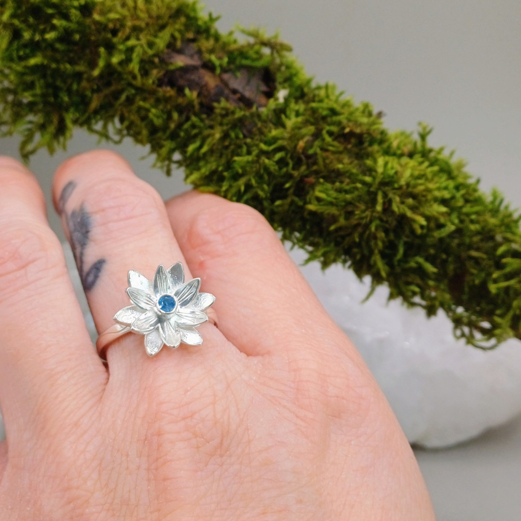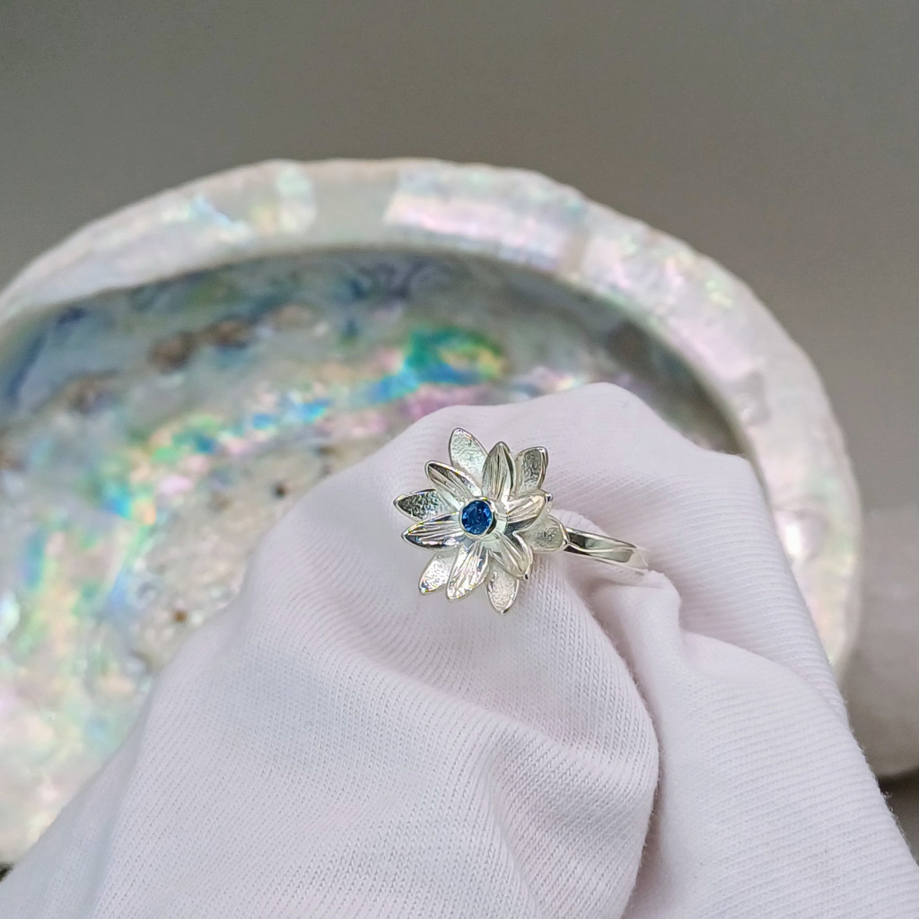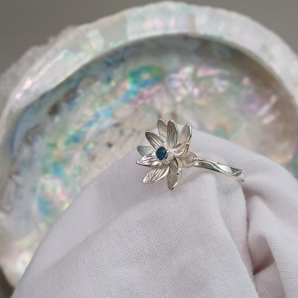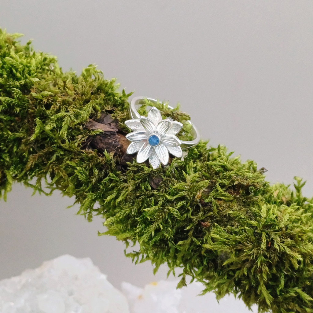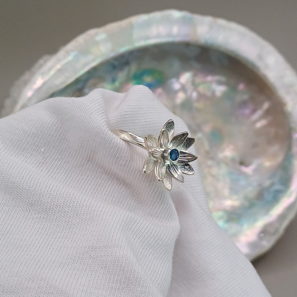 - A szívben rejlő drágakő: A virág közepén tündöklő aquamarin nemcsak színt, hanem spirituális mélységet is ad az ékszernek, képviselve a lélek kristálytiszta őszinteségét.